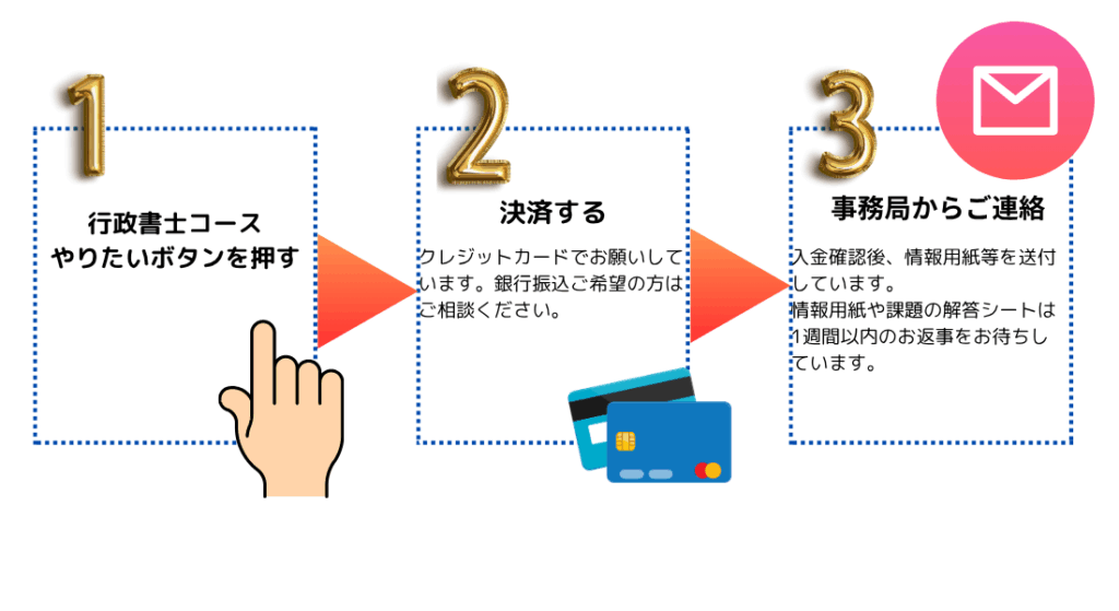人間は、どうしてもいつもの自分のパターンで動きます。違うアプローチや思考方法が必要だと分かっていても、どうしても自分のパターンに戻ってしまいます。行政書士コースでは、定期的なLINEやテストのフィードバックで、壁打ちサポートをし、特性やクセを見い出します。自分パターンに戻らなくて済む体制です。望ましい方向に一緒に進んでくれるフィードバックやマインドセットが得られれば、やがて新しいパターンが自分のパターンとして定着します。目指すゴールが高ければ高いほど、ひとりで上るのは難しいものです。